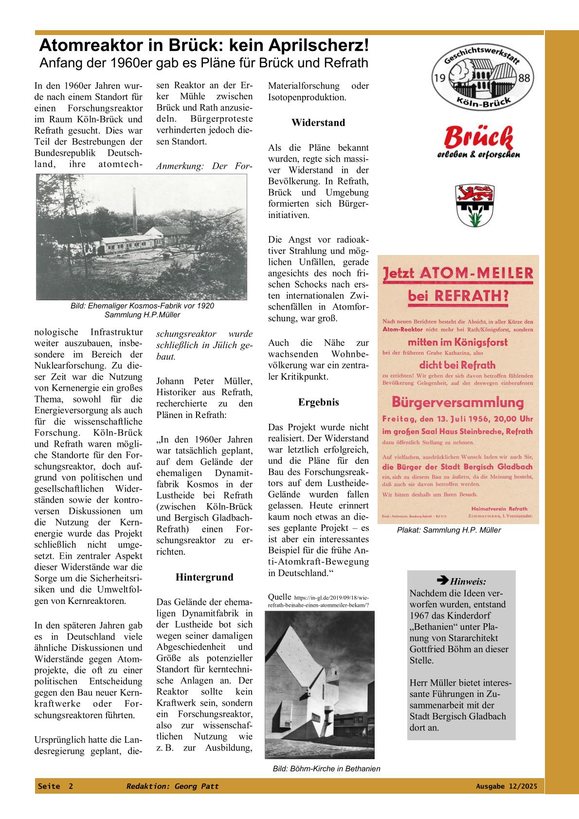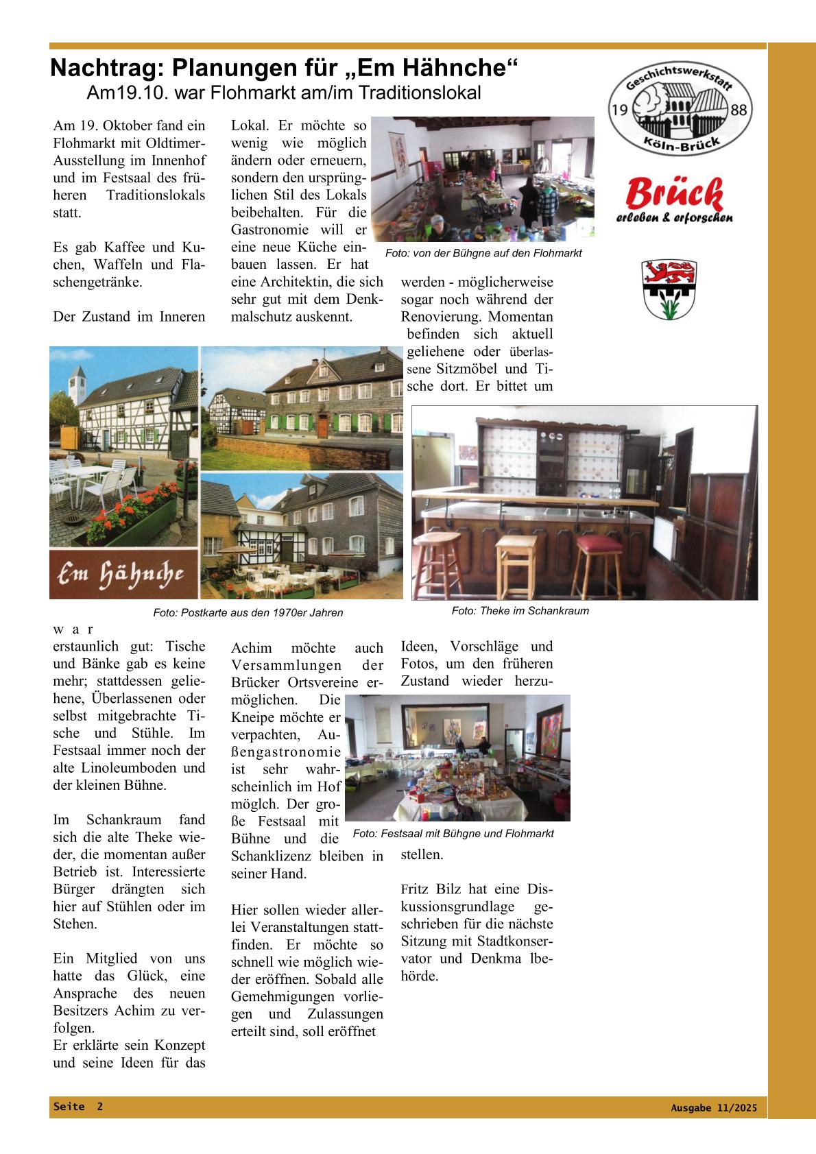 Zu den Feierlichkeiten am 13. September 2025 zum 111. Jahrestag der Eingemeindung von Brück in die Stadt Köln haben wir insbesondere mit einer szenischen Lesung von Ulla Lessmann und Fritz Bilz beigetragen. Ihren Wortlaut bieten wir zum Herunterladen an.