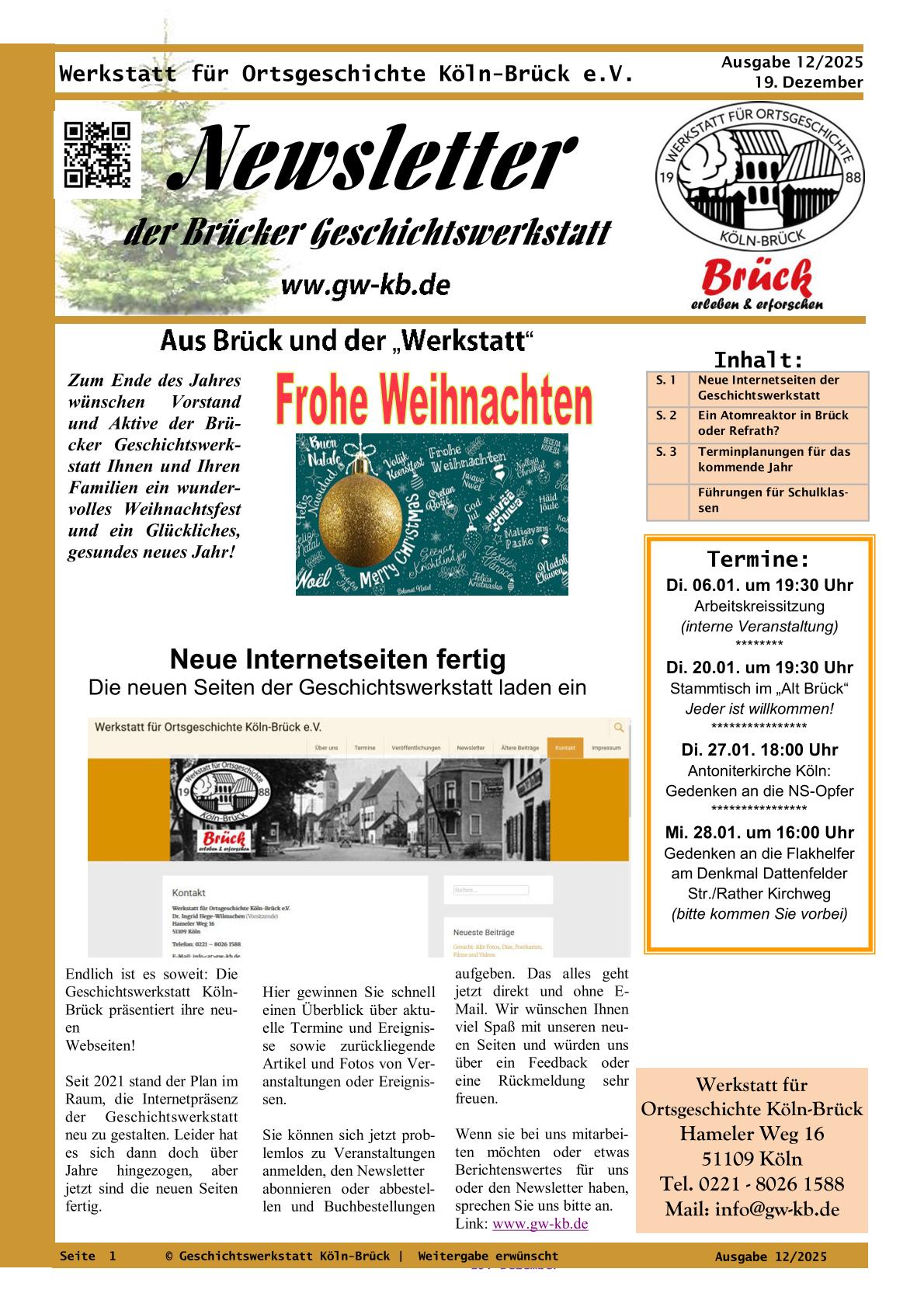Der Vorstand und der Arbeitskreis der Geschichts-werkstatt wünschen allen Besuchern unserer Webseiten ein friedliches Weihnachtsfest und ein glückliches Neues Jahr!