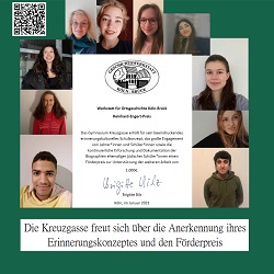 Zwei Schulen haben sich im Jahr 2020 um den Preis beworben: die Käthe-Kollwitz-Realschule Köln-Brück und das Gymnasium Kreuzgasse.